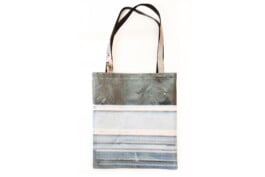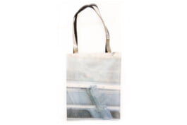 Vanishing Point is a series of bags constructed by Melbourne based up-cycle designers Up Shop Industries from Vantage Point; Rudi Williams' 2019-2021 public commission for Metro Tunnel. Displayed on the corner of Swanston Street and Franklin Street in Melbourne CBD between October, 2021 to January, 2023, the hoarding depicted a series of fragmented observations of the Metro Tunnel excavation sites taken from the vantages of surrounding architecture and infrastructure. Renamed as Vanishing Point in bag form, the repurposed images become impressionistic blowups of the excavation site photographs, drawing attention to the grain and pixels at the foundations of the images used in the original artwork and graffiti that accumulated during the display of the hoarding.
